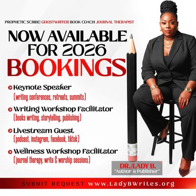 Designed for aspiring and seasoned authors, these workshops guide participants through book writing, storytelling, and the publishing process. Dr. B. breaks down the writing journey into clear, achievable steps while helping writers overcome fear, confusion, and self-doubt, so they leave informed, encouraged, and ready to write with purpose.